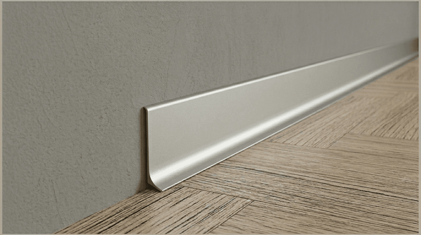 Высота: 40 мм. Нижний отступ: 11–12 мм. Цвет: классический анодированный алюминий, матовое серебро. Тип плинтуса: алюминиевый напольный Л‑образный плинтус. Материал: алюминиевый сплав АД6063. Длина: 3000 мм. Способ монтажа: на жидкие гвозди. Комплектующие (алюминиевые): внутренний угол; наружный угол; соединитель; заглушки. Наличие: складская позиция. ------------------------------------- Назначение: классический напольный алюминиевый плинтус для оформления стыка стены и пола. Анодированные плинтусы в чёрном, золотом и бронзовом цвете также представлены на сайте, ознакомитесь с ними в соответствующей карточке товара. Требуется индивидуальный цвет? Услуга порошковой покраски по палитре RAL classic - сообщите менеджеру желаемый оттенок.