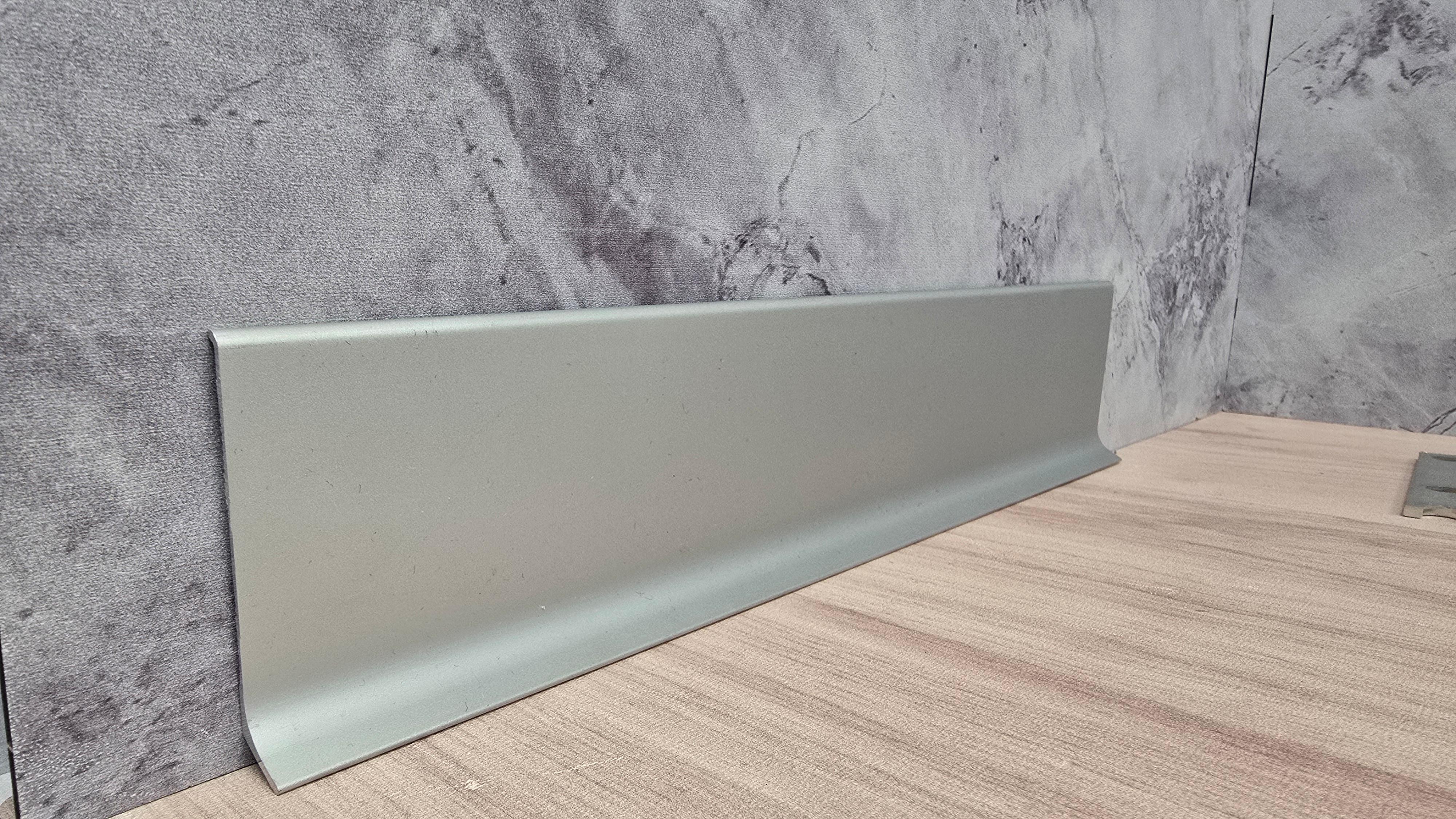 Стандартный цвет : анодированный, серебро матовое . Порошковая покраска :любой цвет по Ral Classic. Высота : 100мм. Форма : отступ в нижней части 10-12 мм. Длина : 3м. Комплектующие : углы, соединения, окончания. Способ монтажа : на жидкие гвозди.